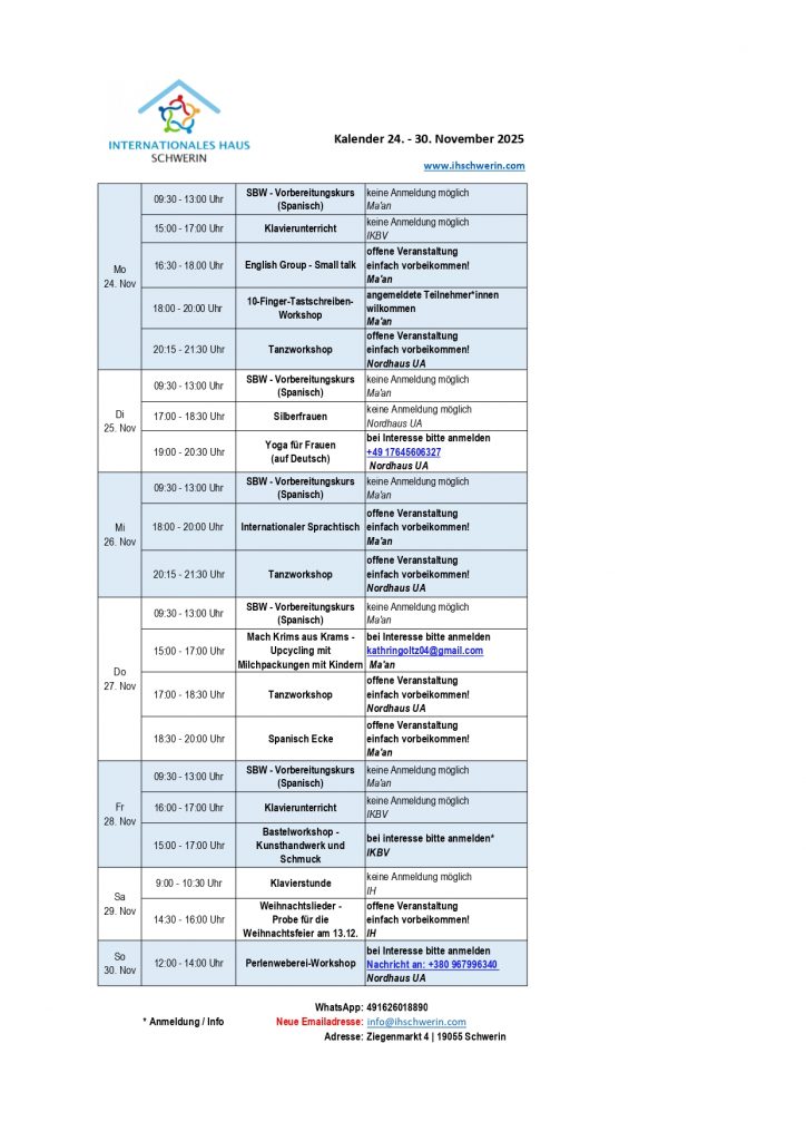 Die drei Vereine Miteinander Ma’an e.V., IKBV und Nordhaus UA haben sich zu Beginn des Jahres 2024 zusammengetan und am 30.05.2024 am Ziegenmarkt 4 in Schwerin das IHS eröffnet. Die drei Trägervereine setzen sich für die gleichberechtigte Teilhabe aller Menschen am gesellschaftlichen Leben in Schwerin ein.