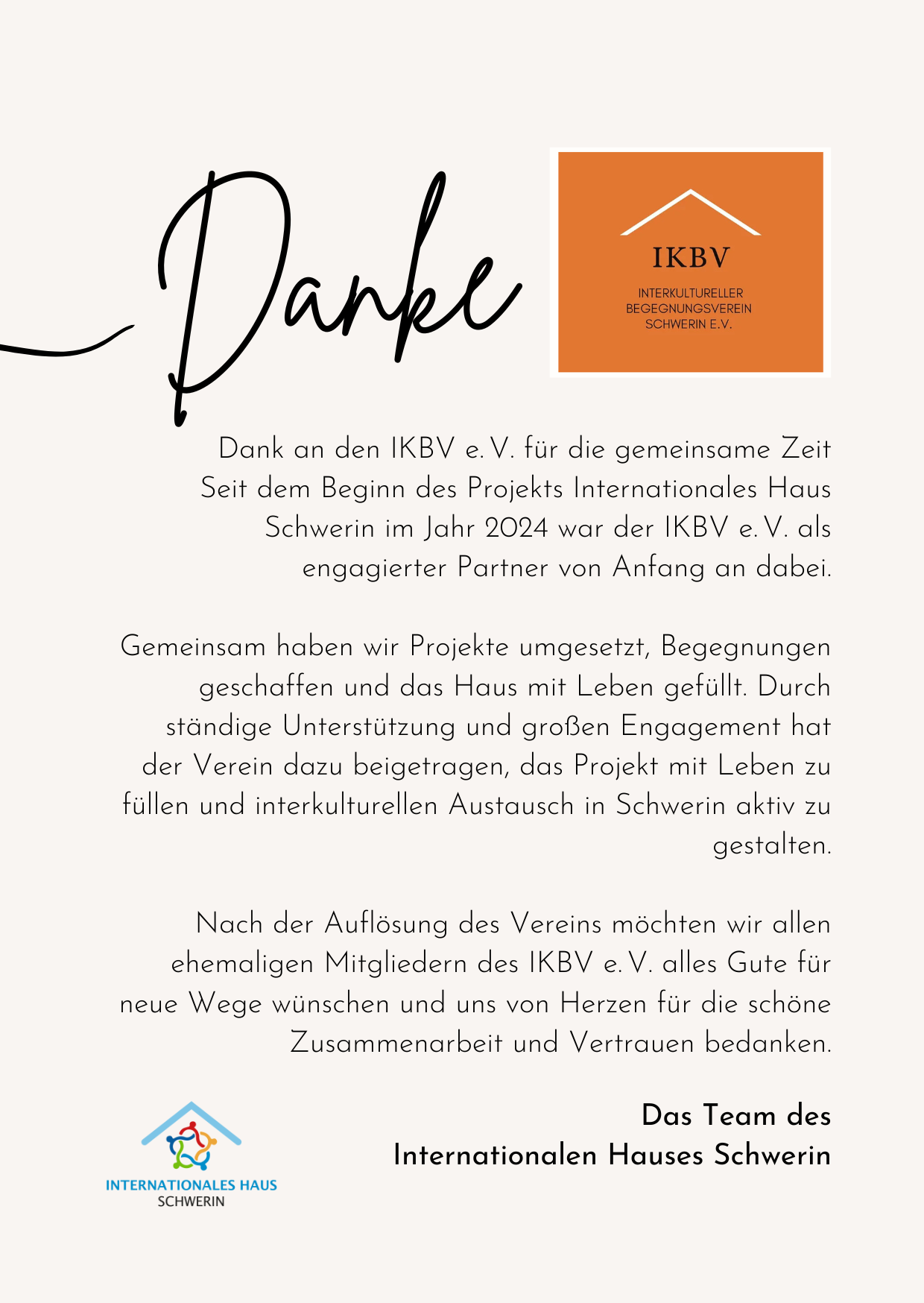 Seit dem Beginn des Projekts Internationales Haus Schwerin im Jahr 2024 war der IKBV e. V. als engagierter Partner von Anfang an dabei.