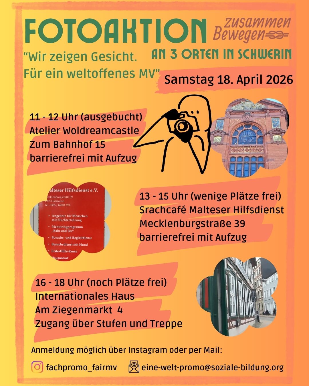 Offene Treffpunkte und gemeinsame Feste – wie zum Beispiel im Rahmen der Interkulturellen Woche oder zum Tag der Menschenrechte – laden zum Mitmachen ein und stärken das Zusammenleben in Schwerin.