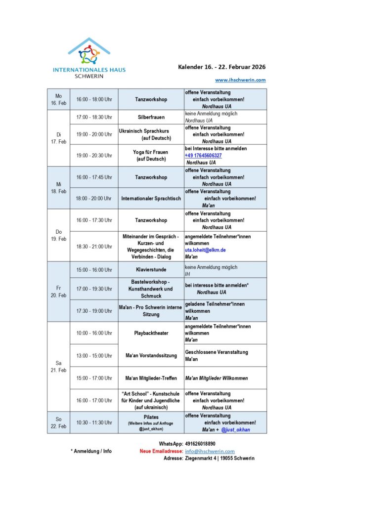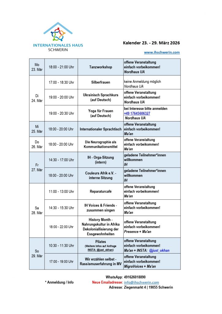 Gemeinsam haben wir Projekte umgesetzt, Begegnungen geschaffen und das Haus mit Leben gefüllt. Durch ständige Unterstützung und großen Engagement hat der Verein dazu beigetragen, das Projekt mit Leben zu füllen und interkulturellen Austausch in Schwerin aktiv zu gestalten.